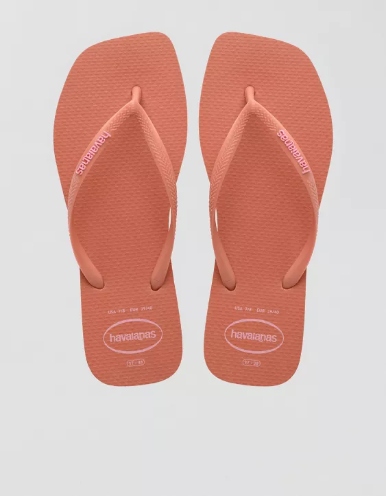 Havaianas Women’s Slim Square Logo Pop Up Flip Flops Coral