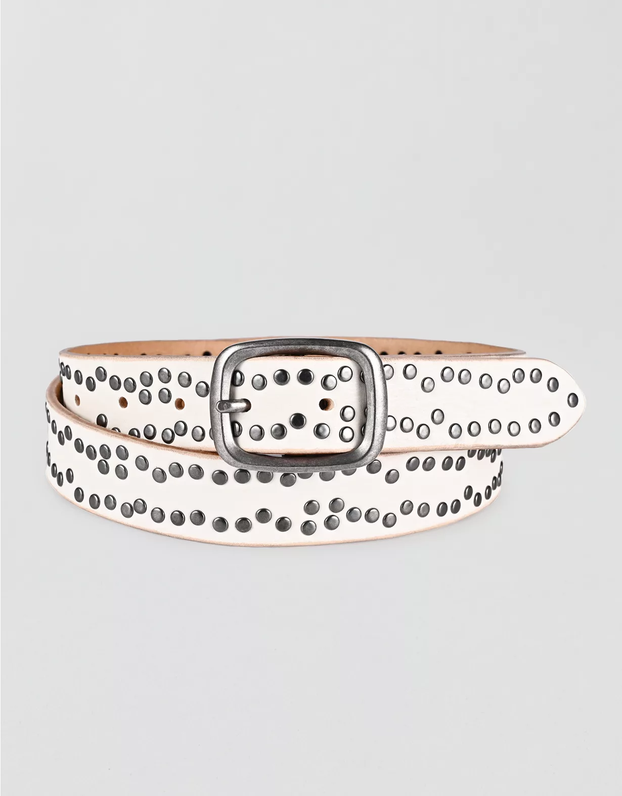 Crafted from genuine vegetable-tanned leather, this belt features mini metallic studs that add dimension to any look.