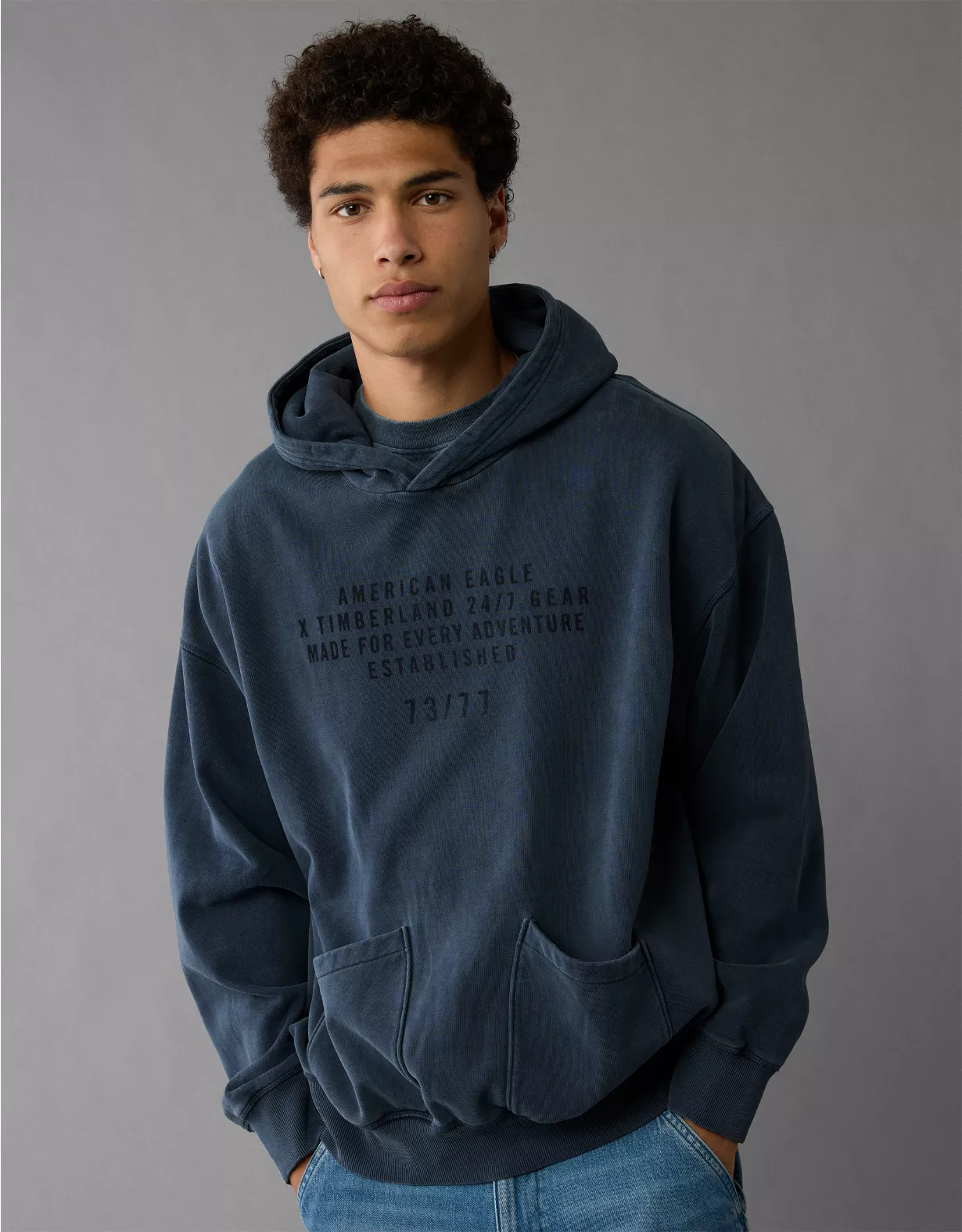 Vintage Timberland workwear meets iconic AE comfort in this cozy fleece sweatshirt, featuring graphics honoring Timberland’s storied 6” Boot.