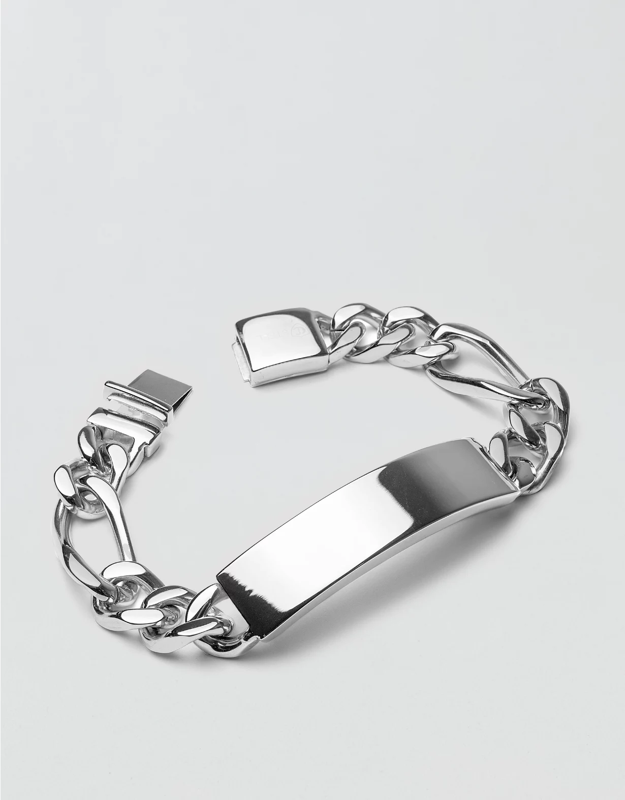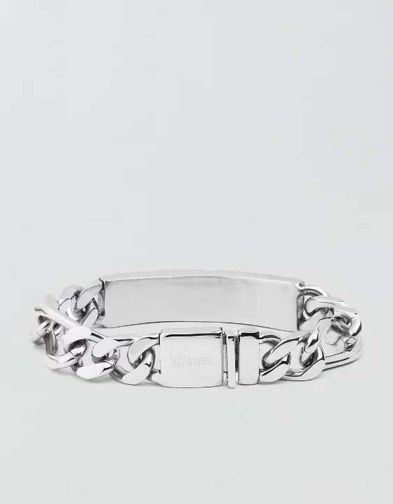 This sophisticated engravable ID bracelet is crafted from a highly polished stainless steel.