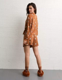 AE Luxe Plush Snoopy Fall Long-Sleeve & Pant PJ Set Oatmeal Heather