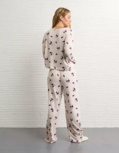 AE Luxe Plush Snoopy Long-Sleeve & Pant PJ Set Oatmeal Heather