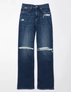 AE Dreamy Drape Stretch Curvy Ripped Super High-Waisted Baggy Wide-Leg Jean Light Destroy Wash