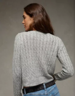 AE Whoa So Soft Cropped Scoop Neck Sweater Medium Heather Gray